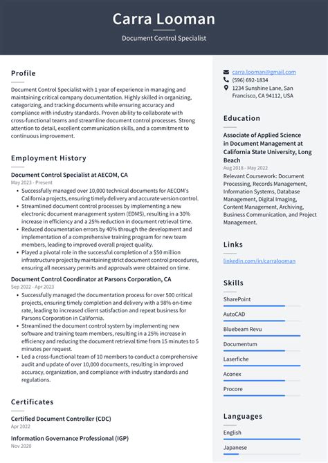 Document Control Specialist Resume - 15 document control specialist resume templates. Read our complete resume writing guides. Create a document control specialist resume using existing templates with skills, summary, education, experience,. Discover 19 effective resume examples and templates for document control specialists. Enhance your job application and.