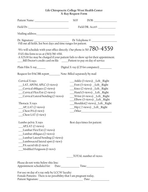 X Ray Request Form Chiropractic . Online forms for the doctor of chiropractic. ©jaymac chiropractic medical request form ver 20190430 page 1 of 1 i hereby authorize jaymac chiropractic and any of its.
